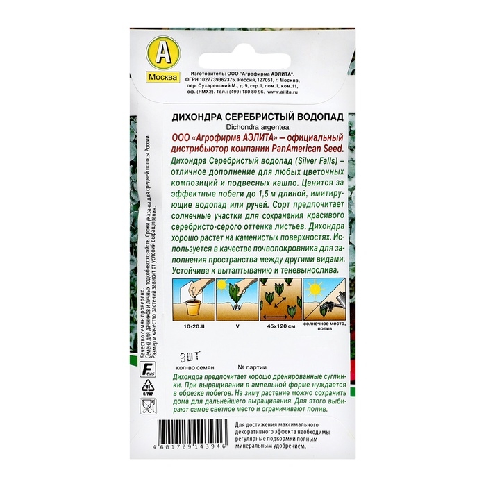 Семена цветов Дихондра "Серебристый водопад", ц/п, 3 шт