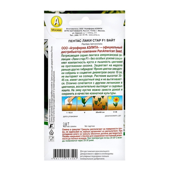 Семена цветов Пентас "Лаки стар" F1 вайт, ц/п, 3 шт