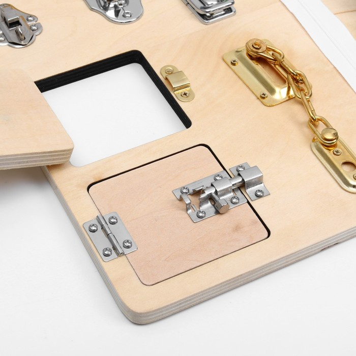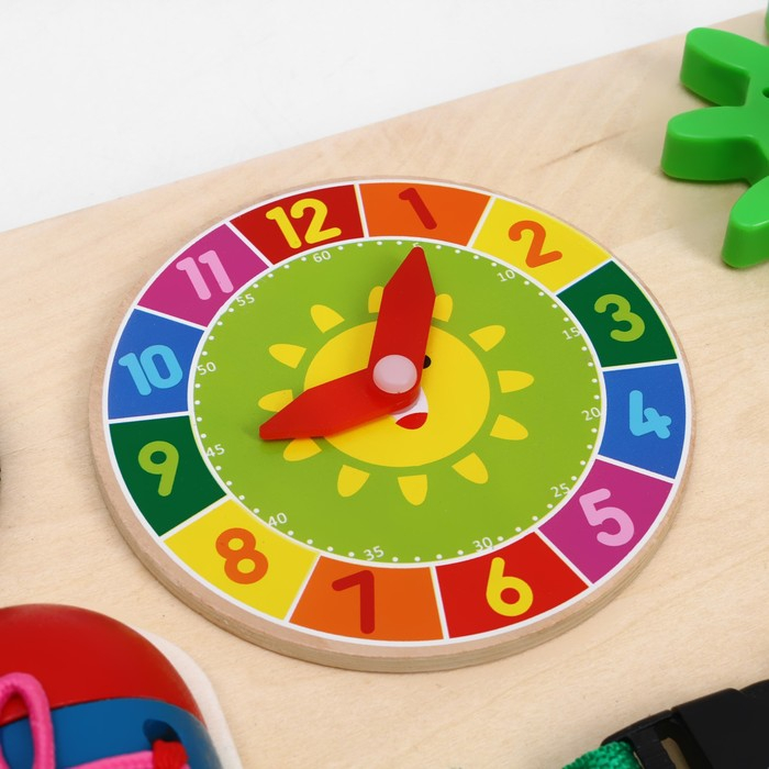 Бизиборд произведён из экологичного и прочного материала — дерева. Игрушка покрыта гипоаллергенными красками.