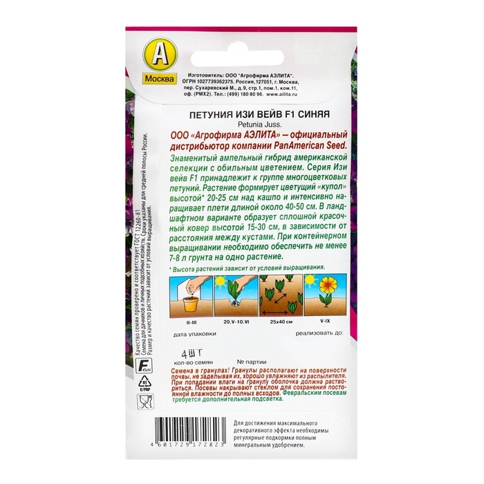 Семена цветов Петуния "Изи вейв" синяя F1, ц/п, 4 шт