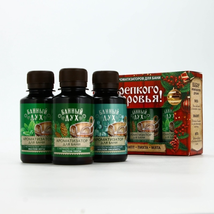 Подарочный набор БАННЫЙ ДУХ «Крепкого здоровья», ароматизатор для бани, 3х100 мл, Новый Год