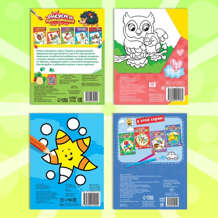 - В комплекте с раскрасками идут цветные карандаши, что станет прекрасным готовым подарком для малышей.