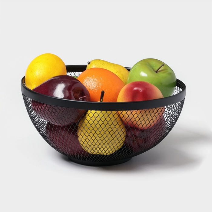 Фруктовница Доляна «Сетка», 26,5×26,5×12,8 см, чёрная