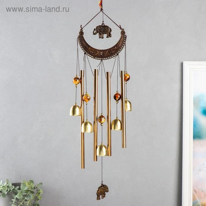 Музыка ветра металл, пластик "Ожерелье и слон" 4 трубки 5 колокольчиков 54 см