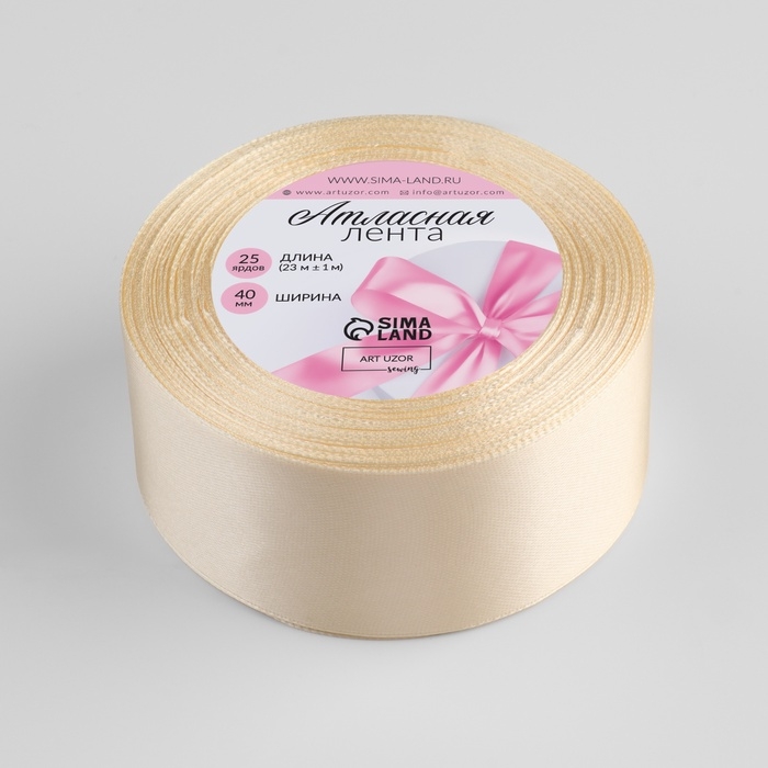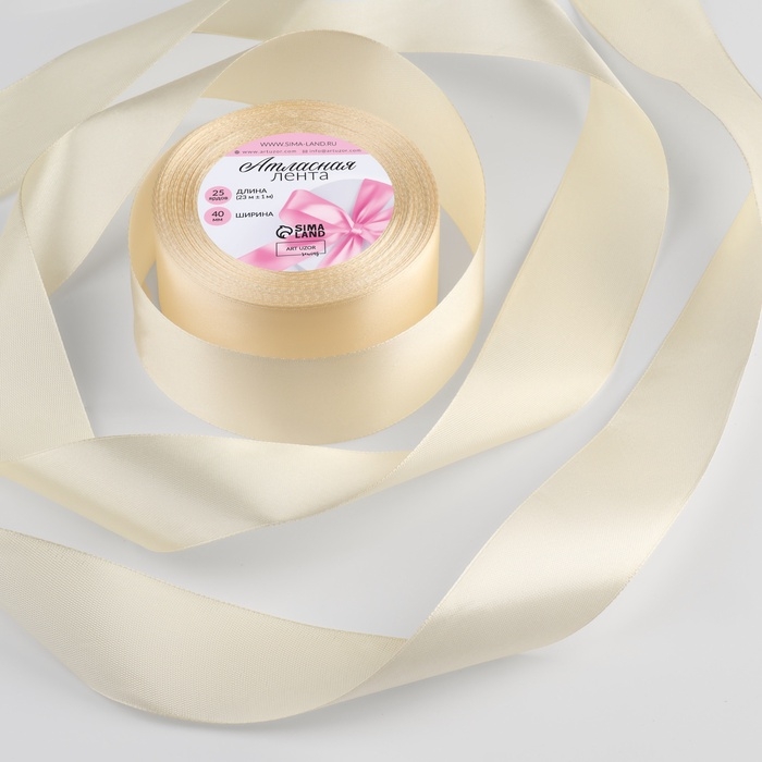 Лента атласная, 40 мм × 23 ± 1 м, цвет молочно-кремовый