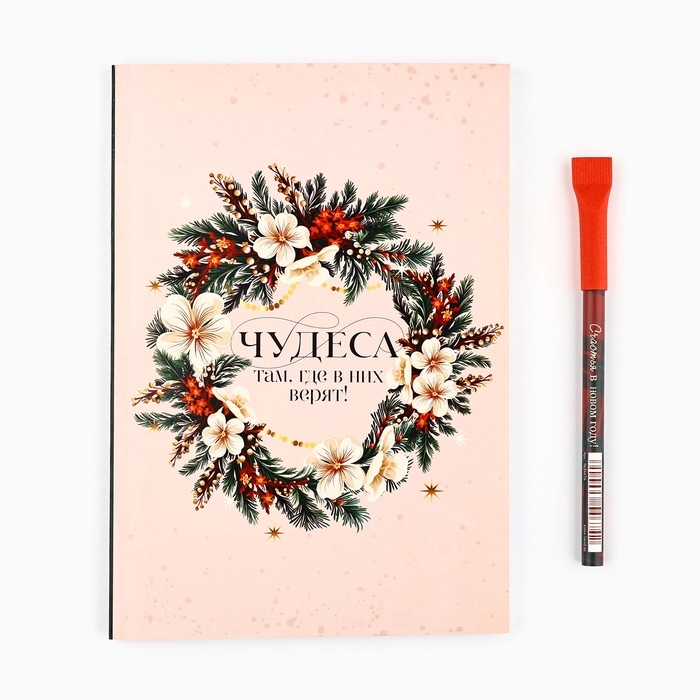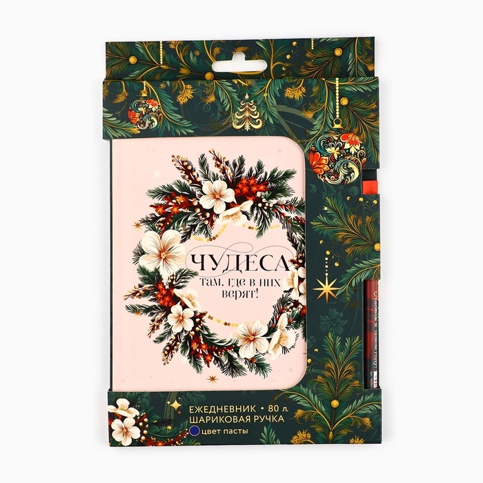Подарочный набор новогодний, ежедневник в тонкой обложке и ручка «Чудеса там, где в них верят»