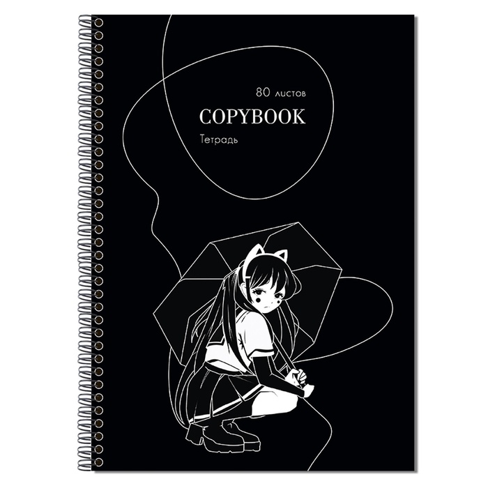 Тетрадь A4 на гребне 80л кл Аниме Art. Девочка ч/б, обл мел карт, офсет