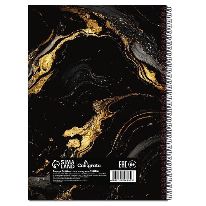 Тетрадь A4 на гребне 80л кл Мрамор. Золото на чёрном, обл мел карт+твин-лак, офсет