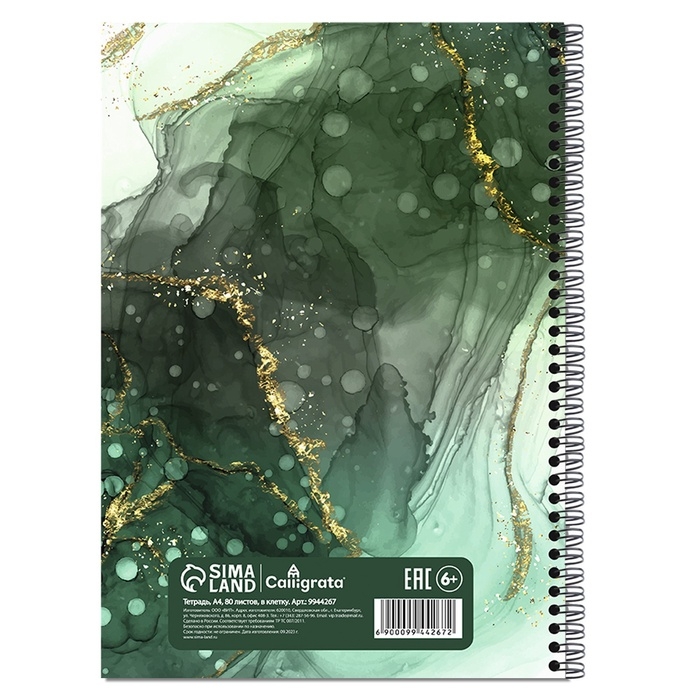Тетрадь A4 на гребне 60л кл Мрамор зелёный, обл мел карт, блок офсет