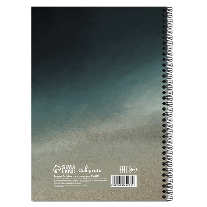 Тетрадь A4 на гребне 96л кл Градиент. Надпись, обл мел карт+твин-лак, блок офсет