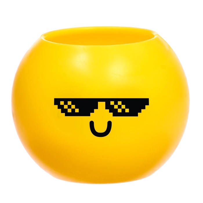 - Горшочек в форме весёлого эмодзи с забавным дизайном.