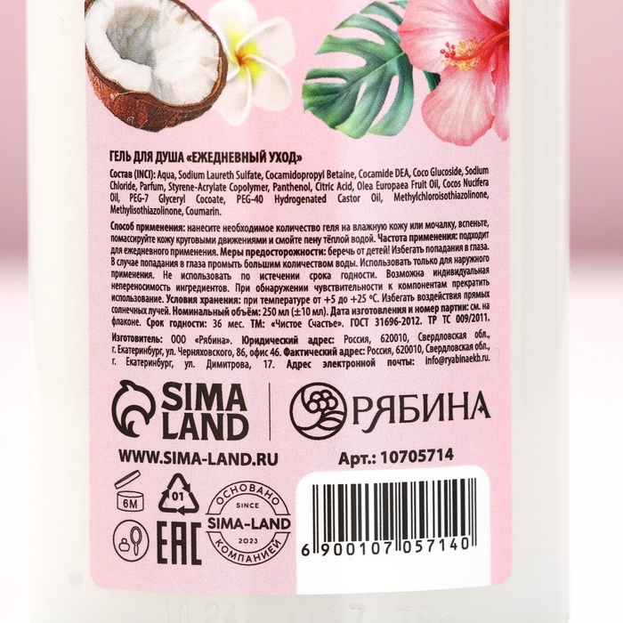 Гель для душа ЧИСТОЕ СЧАСТЬЕ «Самой лучшей», 250 мл, аромат райского кокоса