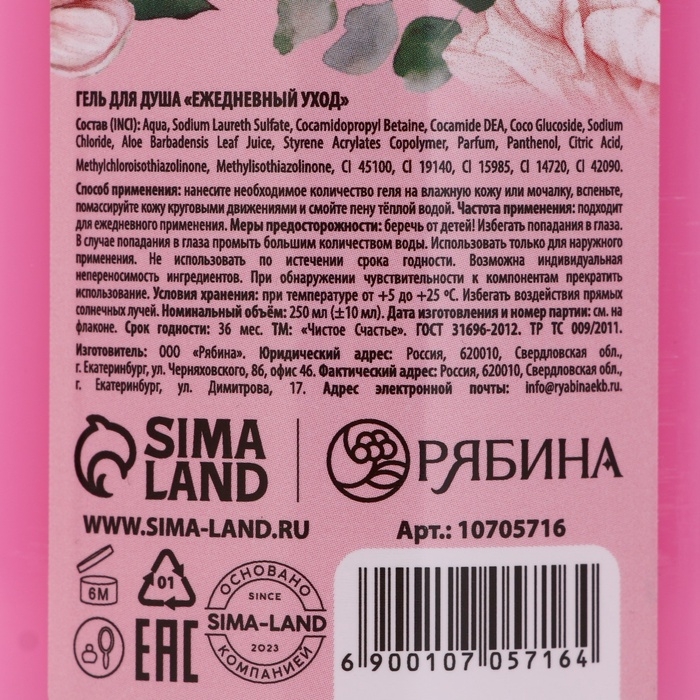 Гель для душа ЧИСТОЕ СЧАСТЬЕ «Самой нежной», 250 мл, аромат воздушного шоколада