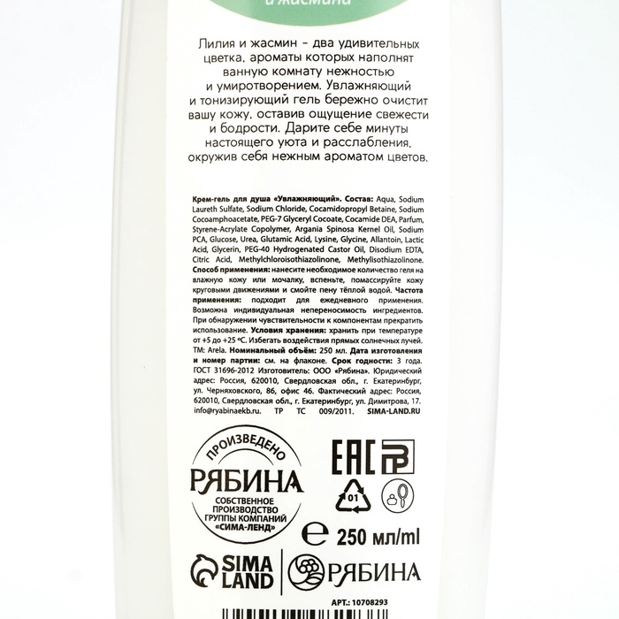 Крем-гель для душа ARELA, 250 мл, аромат лилии и жасмина