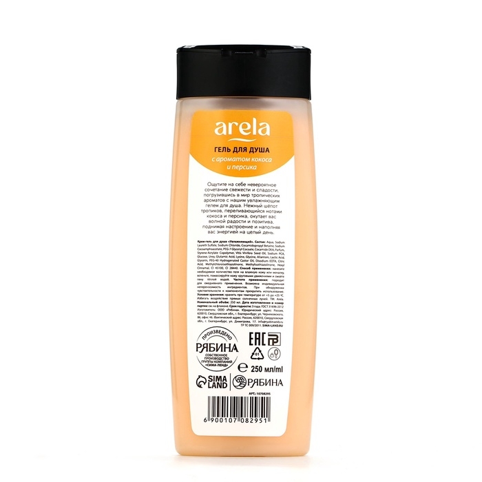 Крем-гель для душа ARELA, 250 мл, аромат кокоса и персика