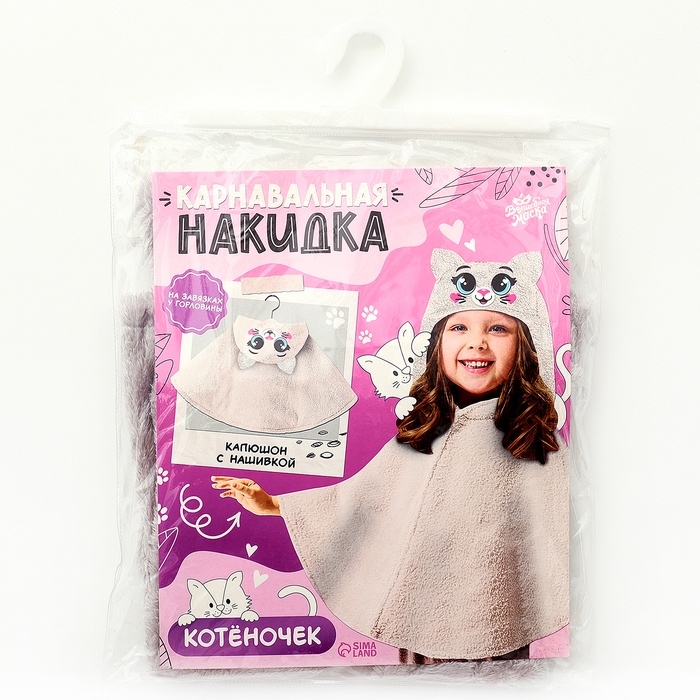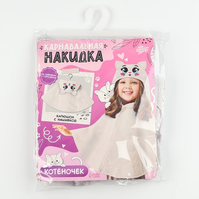Накидка «Котёночек» создаёт образ без сложных костюмов. Она лёгкая, практичная и занимает минимум места при хранении. Ребёнок будет чувствовать себя свободно, ведь накидка не стесняет движений.