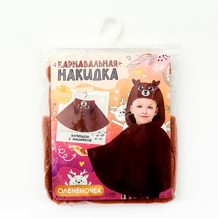 - Дизайн оленёнка делает накидку универсальной для множества тематик, от лесных сказок до карнавалов.