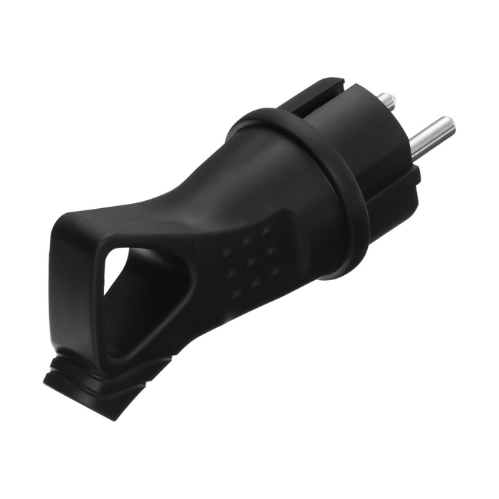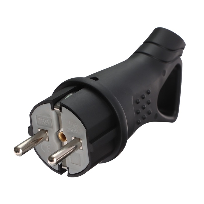 Вилка угловая с кольцом, 16А, с з/к, 220 В, каучук, черная
