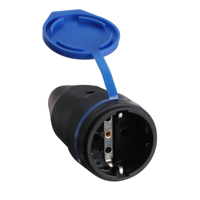 Розетка переносная с защитной крышкой, с з/к, 220 В, каучук, черная