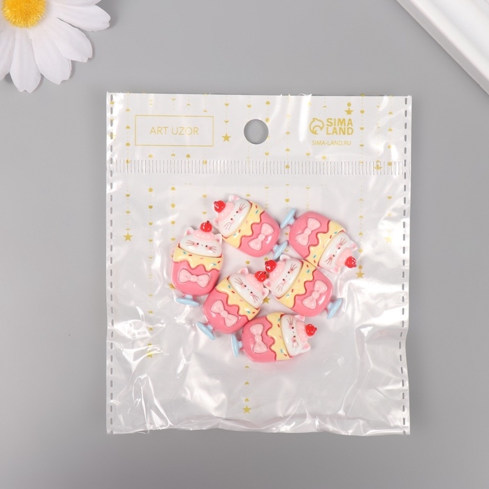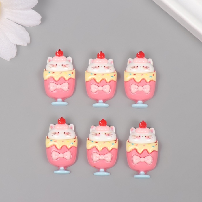 Декор для творчества пластик "Котик в бокале" набор 6 шт 2,5х1,8х1 см