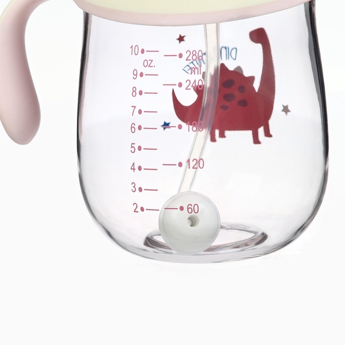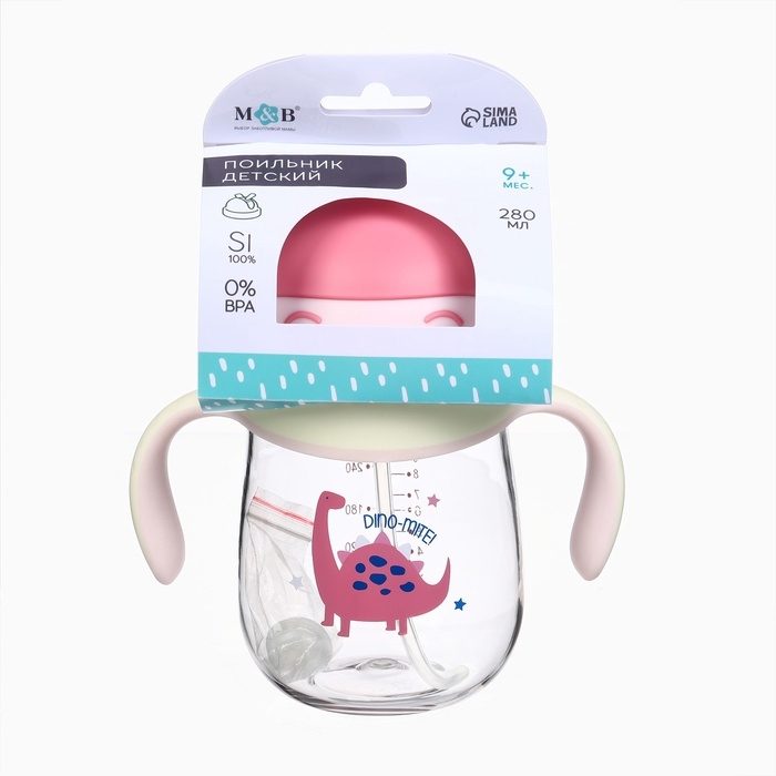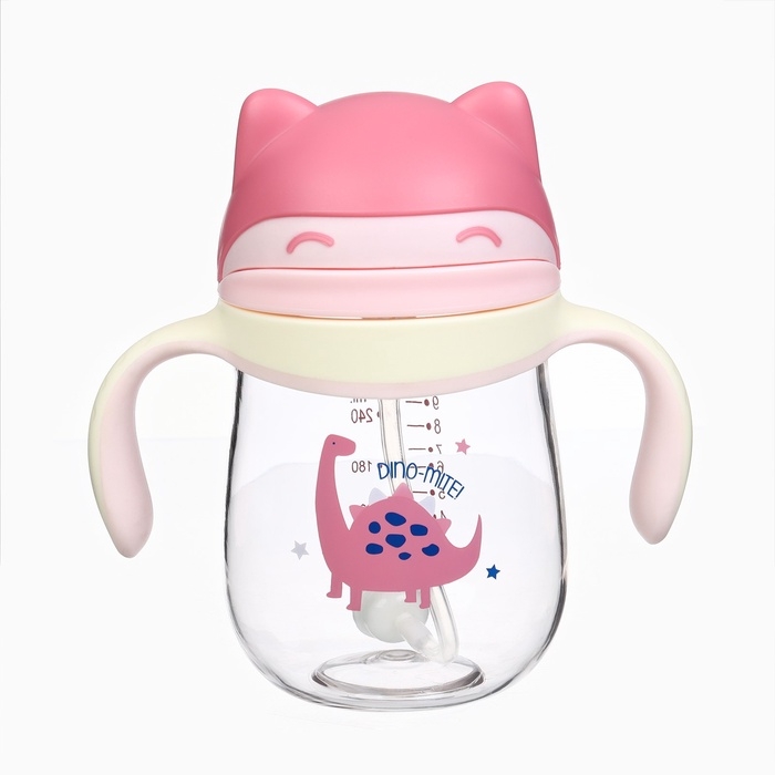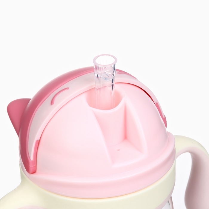 Поильник детский M&B «Котик» с трубочкой, от 9 мес., 280 мл., цвет молочно-розовый
