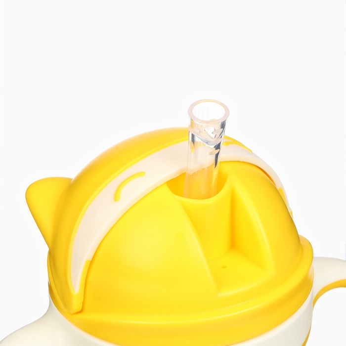 Поильник детский M&B «Котик» с трубочкой, от 9 мес., 280 мл., цвет молочно-желтый