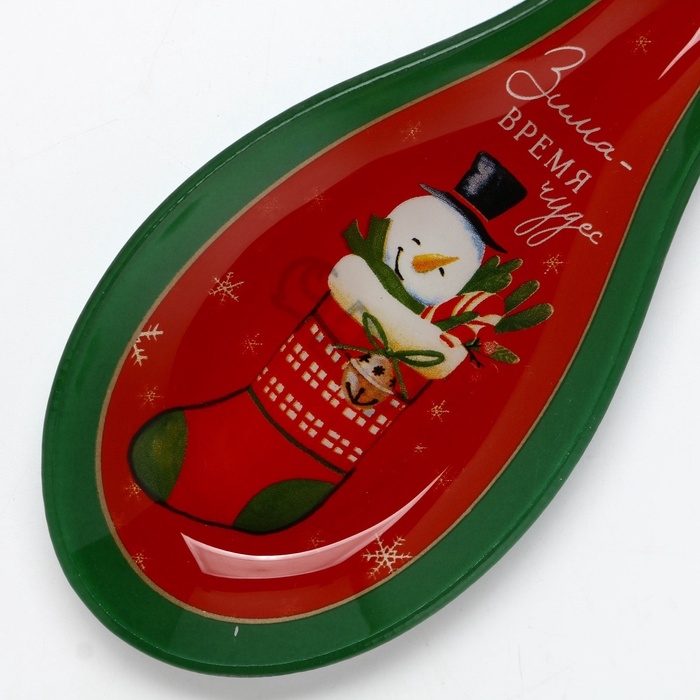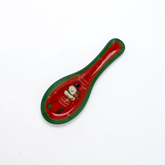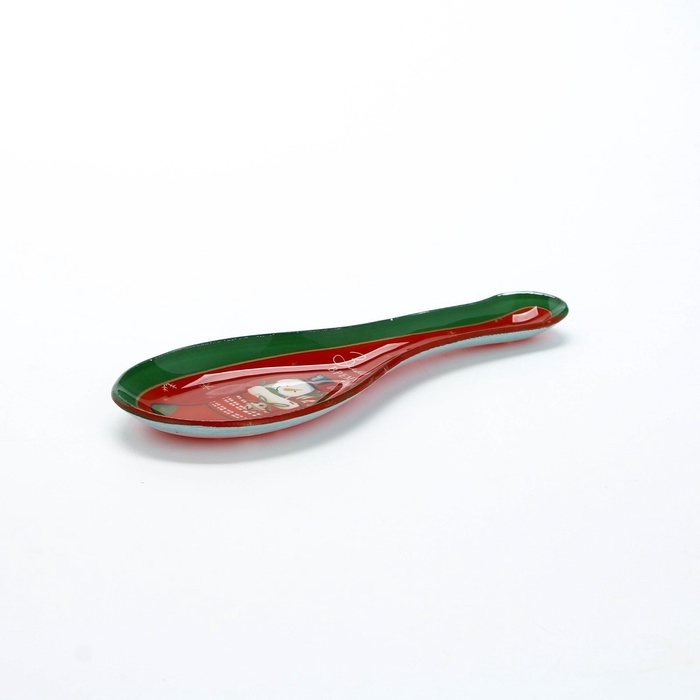 Подставка стеклянная под ложку Доляна «Счастливый Санта», 21×7,5 см, цвет зелёный