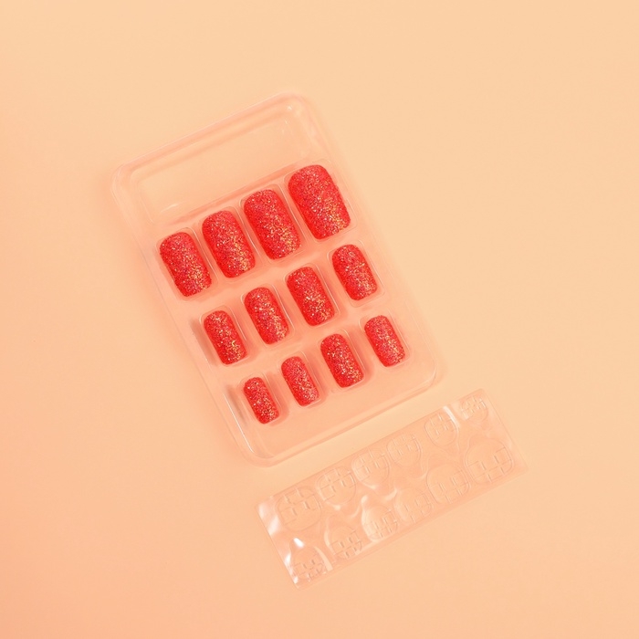 Накладные ногти «Сияние», 12 шт, с блёстками, с клеевыми пластинами, форма мягкий квадрат, красные