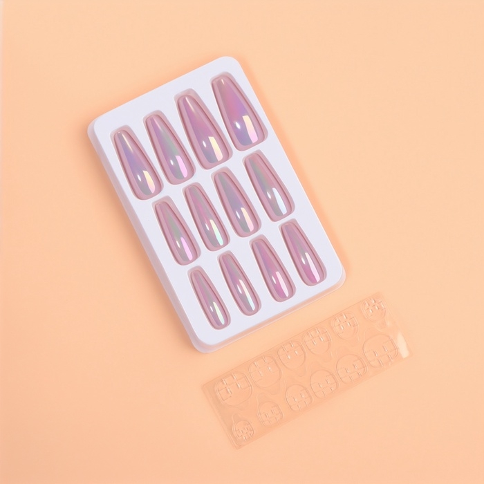 Накладные ногти «Перламутр», 12 шт, с клеевыми пластинами, форма балерина, фиолетовые
