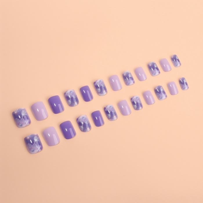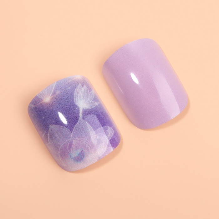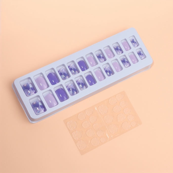 Накладные ногти «Сирень», 24 шт, с клеевыми пластинами, форма мягкий квадрат, сиреневые