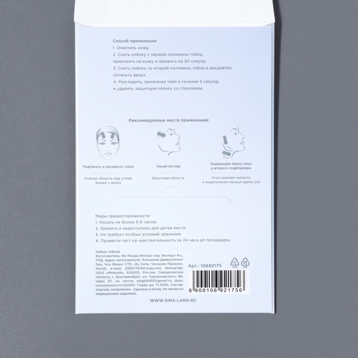 Тейпы под макияж для коррекции овала лица, набор - 12 шт