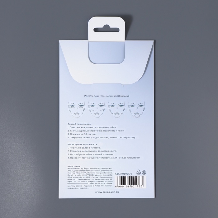 Тейпы под макияж для коррекции овала лица, набор - 2 предмета (аппликации, резинки)