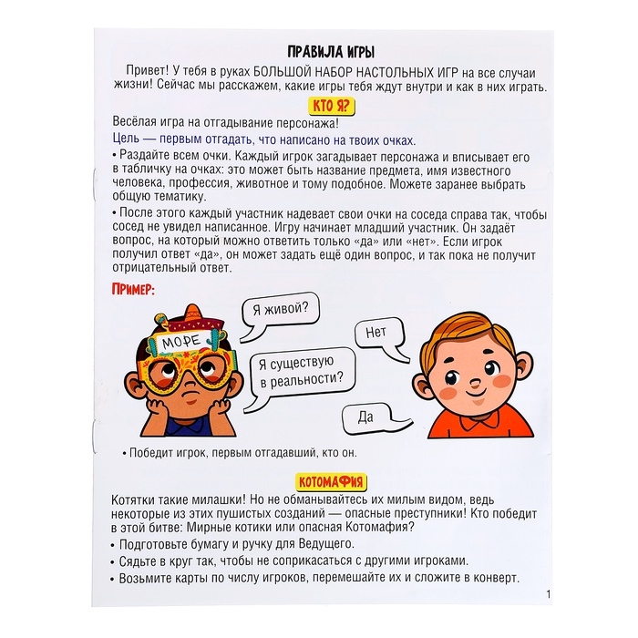 Коммуникативная, Мафия, Мимика и жесты, Семейная, Словесная и числовая, Фанты и подвижные