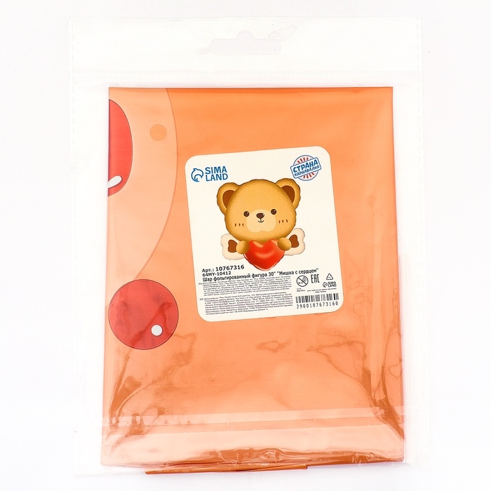 Воздушный шар фольгированный 30" «Мишка с сердцем», фигура животного
