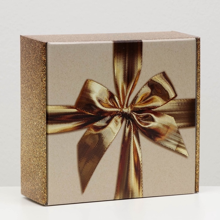 Коробка самосборная "Бант", золотая, 23 х 23 х 8 см