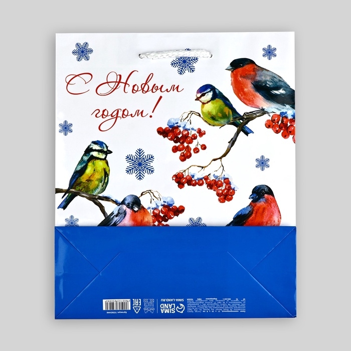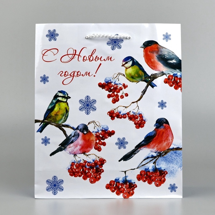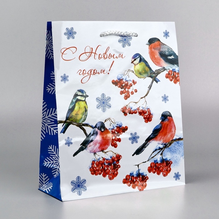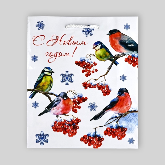Пакет подарочный новогодний ламинированный «Снегири», ML 21 х 25 х 8 см
