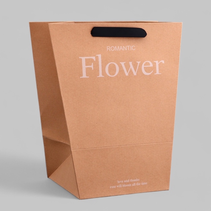 Пакет-переноска трапеция, "Цветы", крафт, 30х20х35см 250гр.