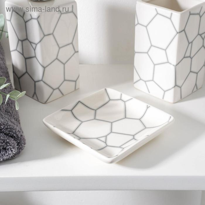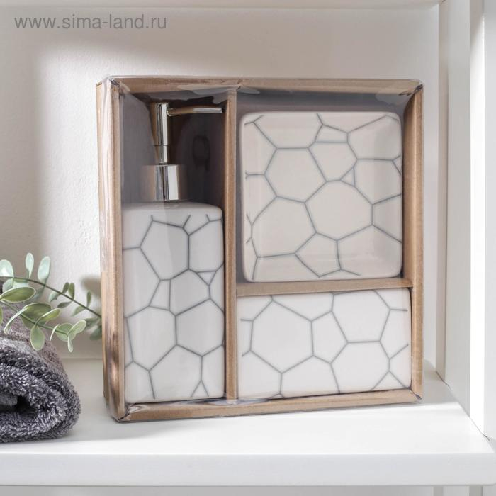 Набор аксессуаров для ванной комнаты Доляна «Изящный барельеф», 4 предмета (дозатор 250 мл, мыльница, 2 стакана), цвет белый