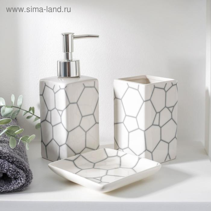 Набор аксессуаров для ванной комнаты SAVANNA «Бэкки», 3 предмета (мыльница, дозатор для мыла 400 мл, стакан), цвет серо-голубой