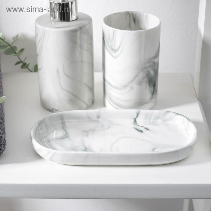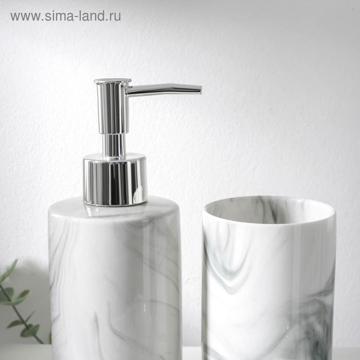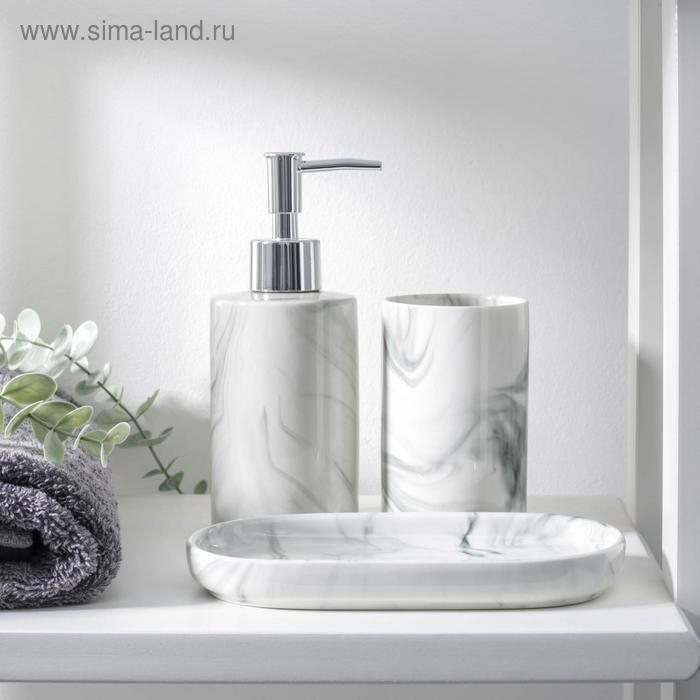 Набор аксессуаров для ванной комнаты «Сила», 3 предмета (мыльница, дозатор для мыла 350 мл, стакан), цвет серый