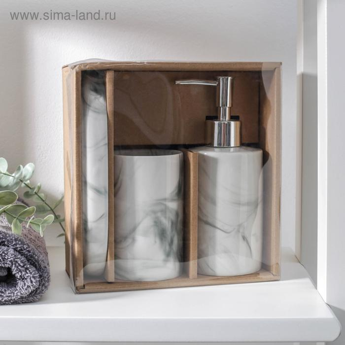 Набор аксессуаров для ванной комнаты «Листва», 2 предмета (дозатор для мыла, стакан), цвет белый