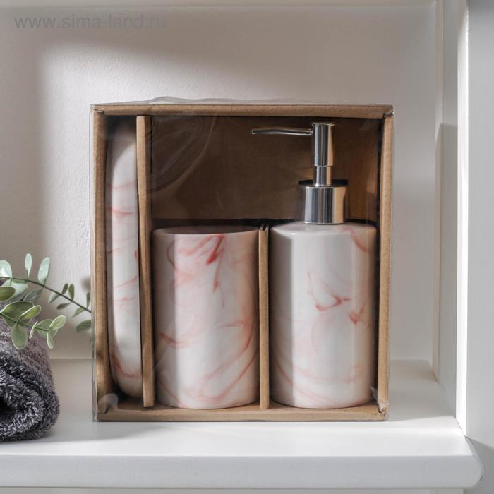 Набор аксессуаров для ванной комнаты «Сила», 3 предмета (мыльница, дозатор для мыла 350 мл, стакан), цвет персиковый