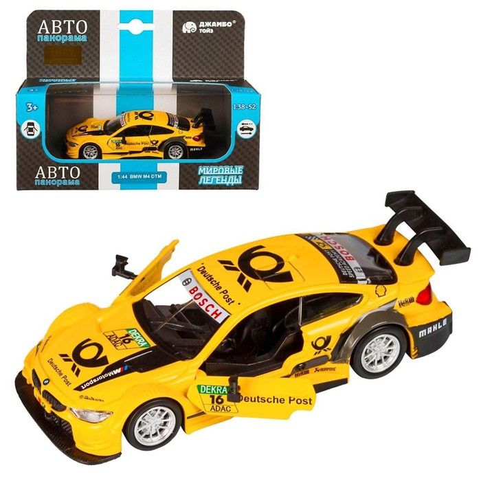 Машина металлическая BMW M4 1:44, инерция, открываются двери, цвет жёлтый