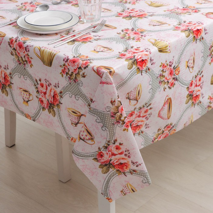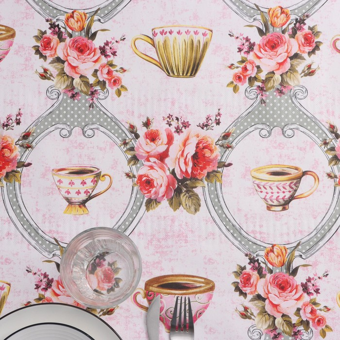Клеёнка на стол Доляна «Чаепитие», на нетканой основе, ширина 137 см, толщина 0,2 мм, рулон 20 м