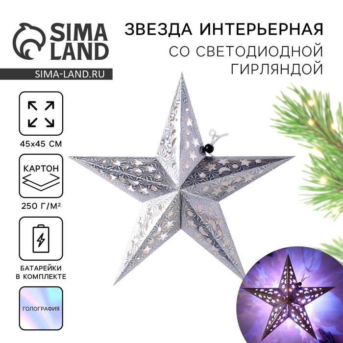 Звезда интерьерная с гирляндой новогодняя «Новый год: Космическое небо», 45 × 45 см.