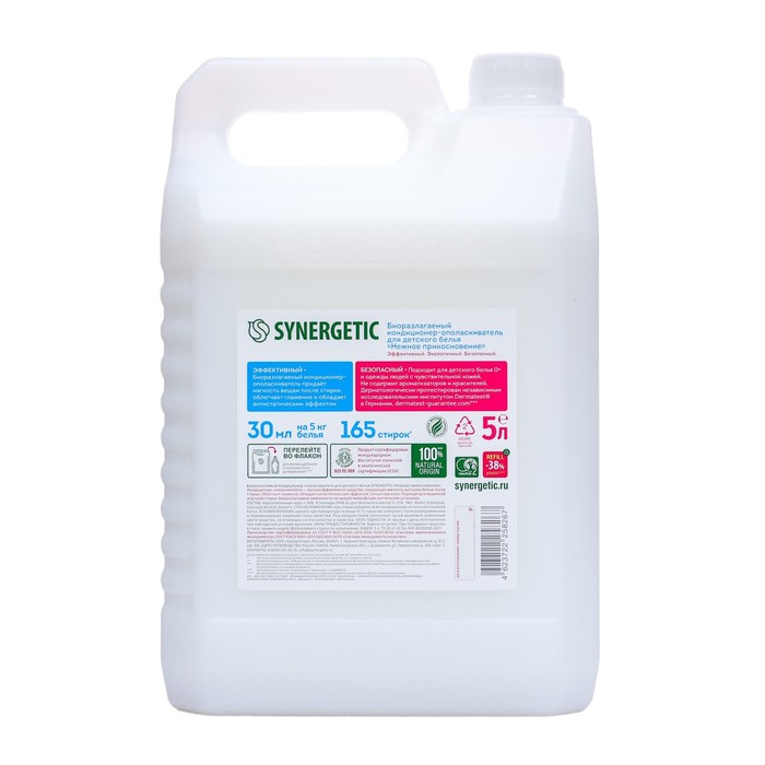 Кондиционер-ополаскиватель для белья Synergetic "Нежное прикосновение", детский,гипоаллергенный,5 л