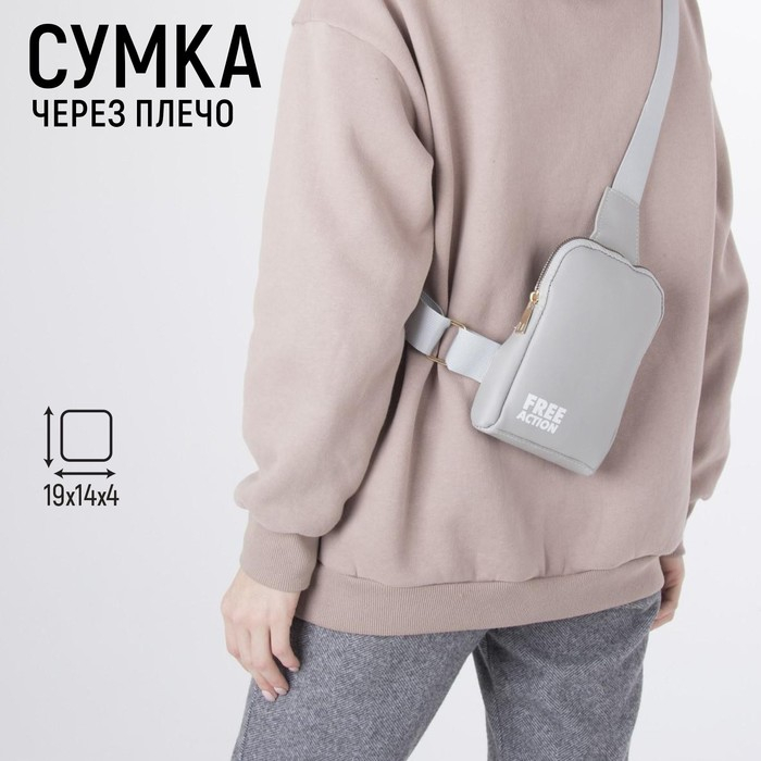 Сумка молодёжная через плечо FREE action, цвет серый