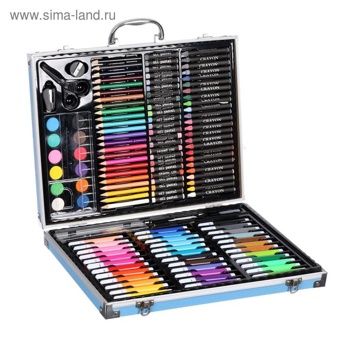 Набор состоит из: Набора цветных карандашей, акварельных красок с кистью, набора цветной пастели, восковых мелков, а так же широкий выбор цветных фломастеров. Для более удобной и продуктивной работы, в комплекте так же есть линейка, ножницы, ластик, степлер, точилка, корректор, кисть с полостью для воды, и простой карандаш. Широкий выбор канцтоваров для творчества и работы, стильный и удобный металлический портфель, отличный набор для опытного и начинающего художника