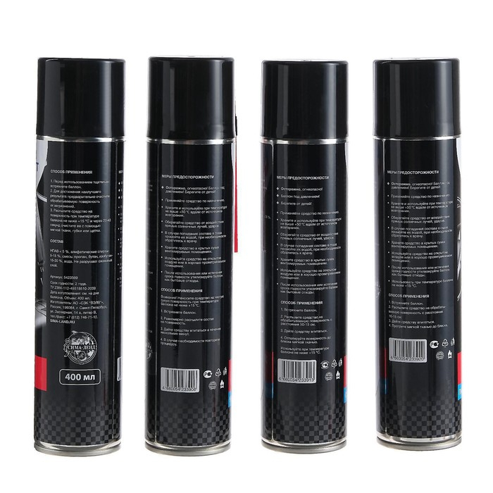 Подарочный набор для ухода за авто "23 Февраля" Military, набор автохимии: силиконовая смазка 400 мл, полироль пластика 400 мл, очиститель салона 400 мл, чернитель шин 400 мл + микрофибра