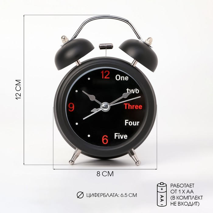Будильник "One, two", дискретный ход, d-6.5 см, 12 х 8 см, черные